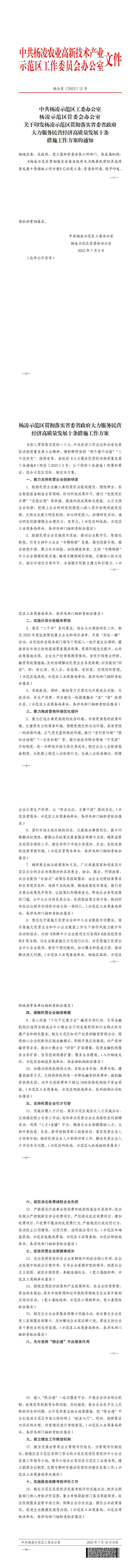 杨凌示范区贯彻落实省委省政府大力服务民营经济高质 量发展十条措施工作方案